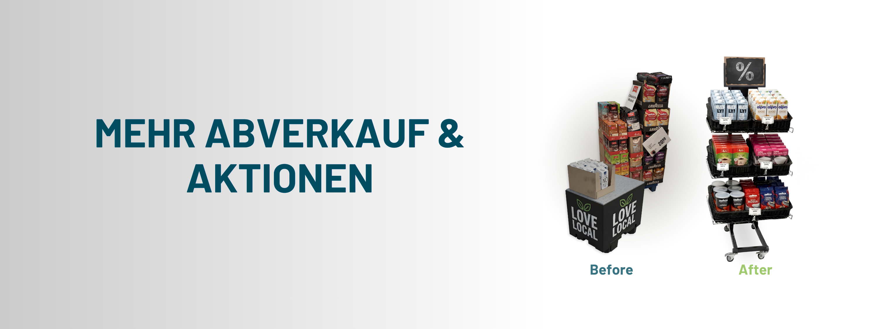 Sofort sichtbare Aktionsfläche für Überhänge, Saisonreste und Promo-Ware – sauber, rollbar, leicht nachzufüllen.