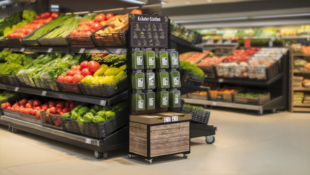 Kräuter funktionieren am besten dort, wo der Kunde ohnehin vorbeikommt und zugreift: Nähe zu O&G / Frische, Laufweg, Koch-Inspiration.