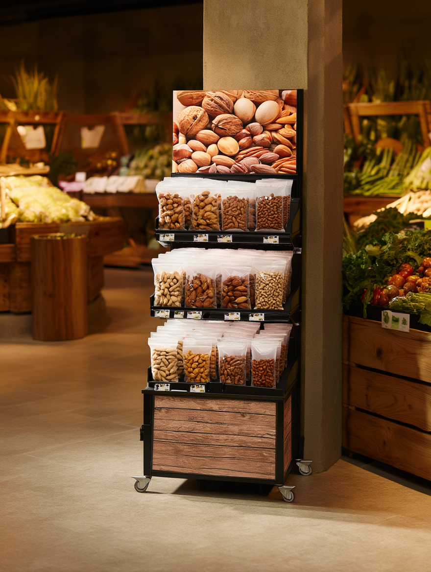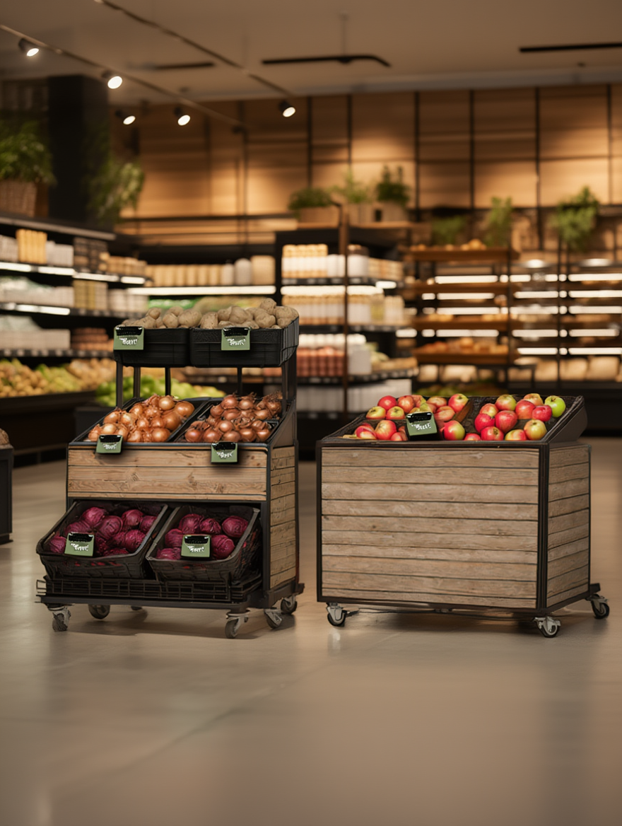 Kuratiertes Regional-Sortiment als Mitnahme-Insel – sichtbar, wertig und jederzeit wechselbar.